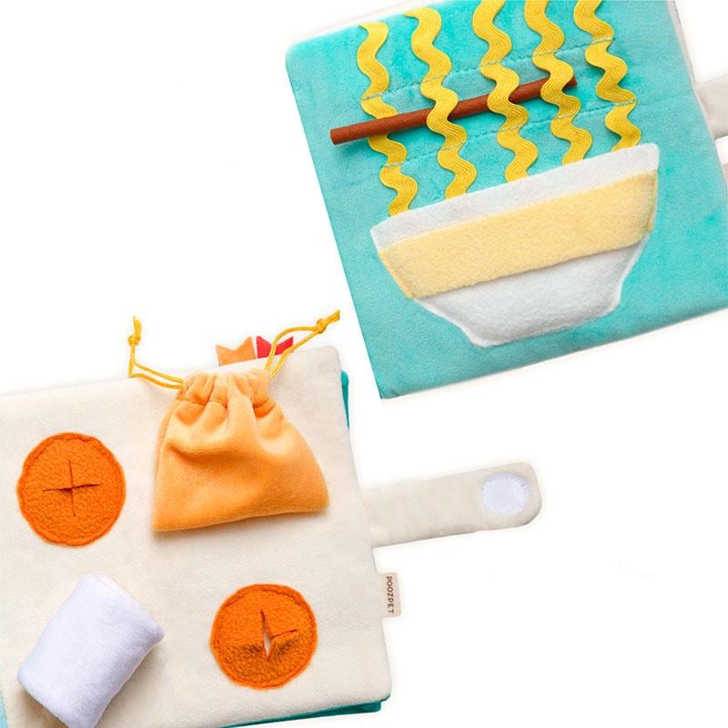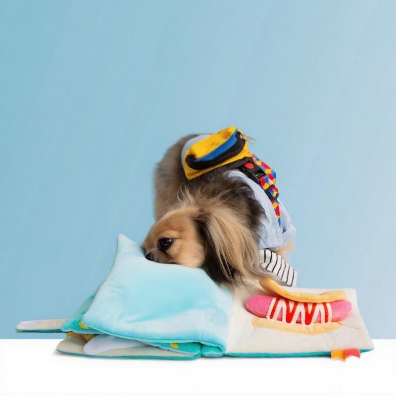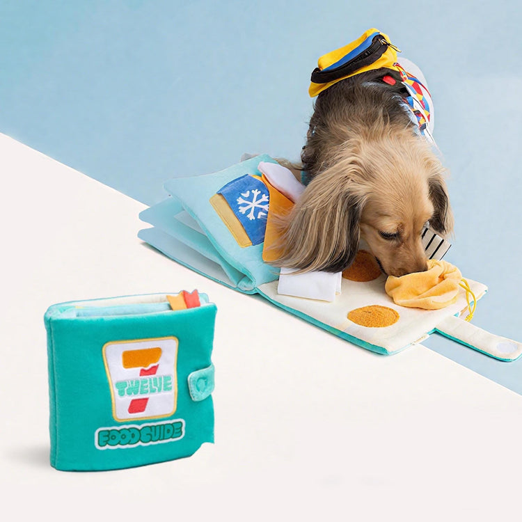 Looking for a fun and brain-boosting way to keep your dog entertained? Say hello to our Snuffle Book – Seven Twelve Foodie Guide The foodie guide features popular food which includes ramen, hotdog, coffee,and snacks with multiple hiding spots for treats, turning every flip into a scent-filled adventure. With flaps to lift, corners to explore, and different textured sections to engage the nose, your pup gets the ultimate sniffing challenge while having a blast. Not only does this toy provide mental stimulation, but it also helps slow down eating and ease boredom or anxiety.