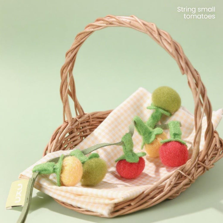 Spice up your cat’s playtime with this adorable tomato-themed teaser toy! Made with durable felt and a soft string vine, this interactive cat toy features colorful tomato balls that dangle and bounce—perfect for swatting, pouncing, and biting. Tomato is stitched with care and includes a hidden bell that adds an irresistible jingle with every move, keeping your kitty curious and engaged for hours.